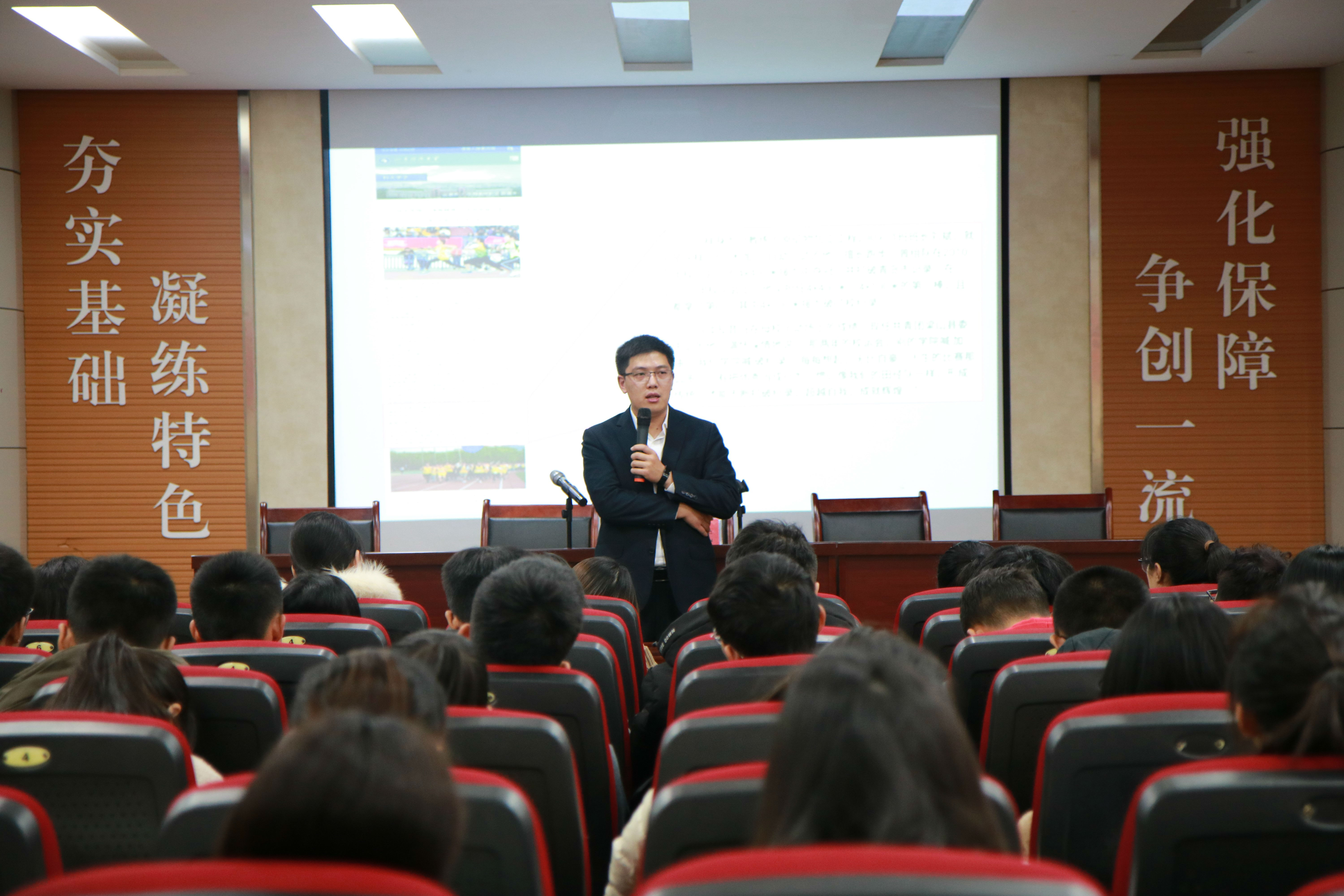 11月24日上午,澳门十大信誉好的网站在J2-104报告厅举办校友论坛,梁山县团委书记、2010年澳门十大信誉好的网站田径队总教练、2013届优秀毕业生刘斌受邀作为主讲,与同学们分享成长历程。澳门十大信誉好的网站团委书记易凡、2019级辅导员诸葛长华、学生会主席张迪、现任田径队团支部书记总教练任晓聪出席论坛,部分班级团干部、入党积极分子代表及田径队团支部团员代表参加了论坛。