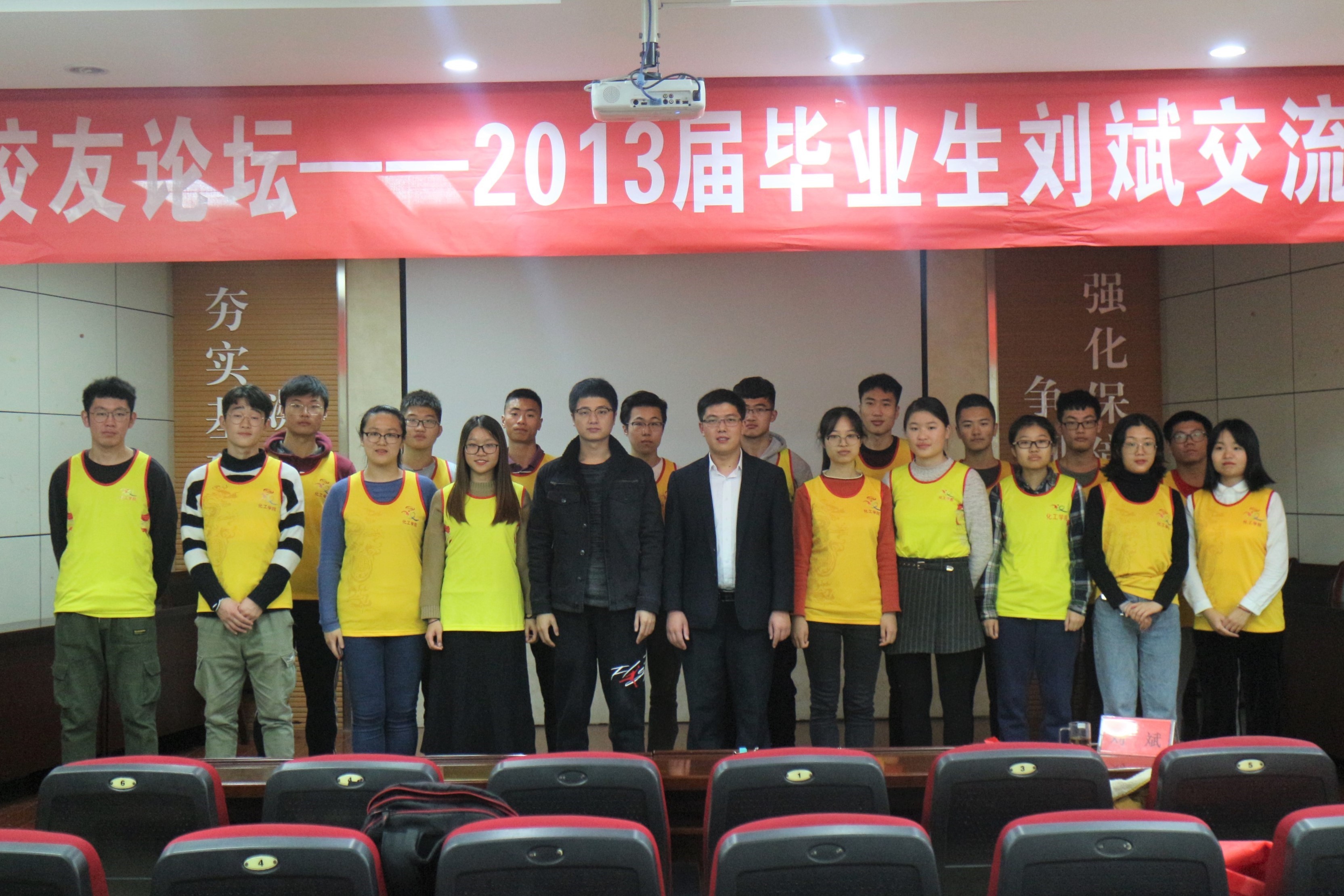 座谈会上,刘斌首先回忆了他在科大度过四年时光。他满怀深情说道:“母校就是无论你何时离开,何时回来,都亲切如初、倍觉温暖的地方。”讲述过程中,他多次谈到田径队中的美好时光,他真诚告白在场田径队团员同学:付出汗水才会收获成功,坚持训练即是长胜法宝,团结共进成就田径传奇。作为连续四年参加校运动会的老教练,刘斌说,他虽已毕业六年,但依然每天关注母校动态,每年越野赛、运动会时节甘当“小黄衫铁粉”,每次听到“化工化工,谁与争锋”的口号都心潮澎湃。接着,刘斌和大家分享了毕业后扎根基层、无私奉献的工作经历。期间,他多次感谢老师们给予的鼓励和帮助。他强调,作为学生,在学习上应珍惜大学学习时光,时刻不能松懈,用学业成绩证明自己;作为党员学生干部,在工作上,应时刻不忘为同学服务的初心,牢记做同学公仆的使命,兢兢业业,尽心尽责。最后,针对同学们提出的有关心态调整、压力缓解、学习工作之间的平衡方面的问题,他都一一细心解答。他热情真诚、诙谐幽默的的回答引得同学们笑声阵阵,掌声不断。