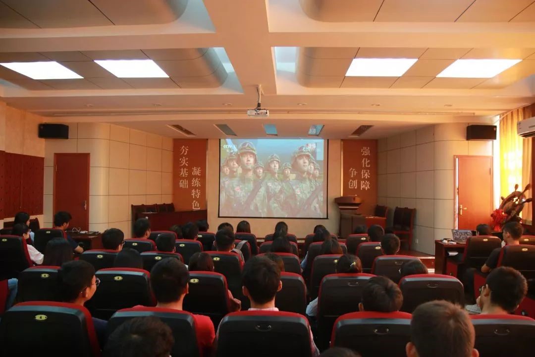 首先,易凡、李玲玲两位老师分别讲话。易凡向大家介绍了新中国成立70年以来取得的辉煌成就,强调奋斗成果的来之不易,要求大家紧跟时代步伐,坚定不移跟党走。李玲玲教导2019级学生当怀爱国之心,以赤子之情矢志报国。随后,到场师生共同观看了国庆70周年大阅兵直播。从大家的眼神中,可以感受到每个人对祖国强大繁荣的自豪。受阅官兵个个身姿挺拔,英姿飒爽。屏幕上,每个方队都整齐划一,士气昂扬,使同学们热血沸腾。阅兵式结束后,易凡老师带领在场师生一起学习了习近平总书记在庆祝中华人民共和国成立70周年大会上的重要讲话精神。