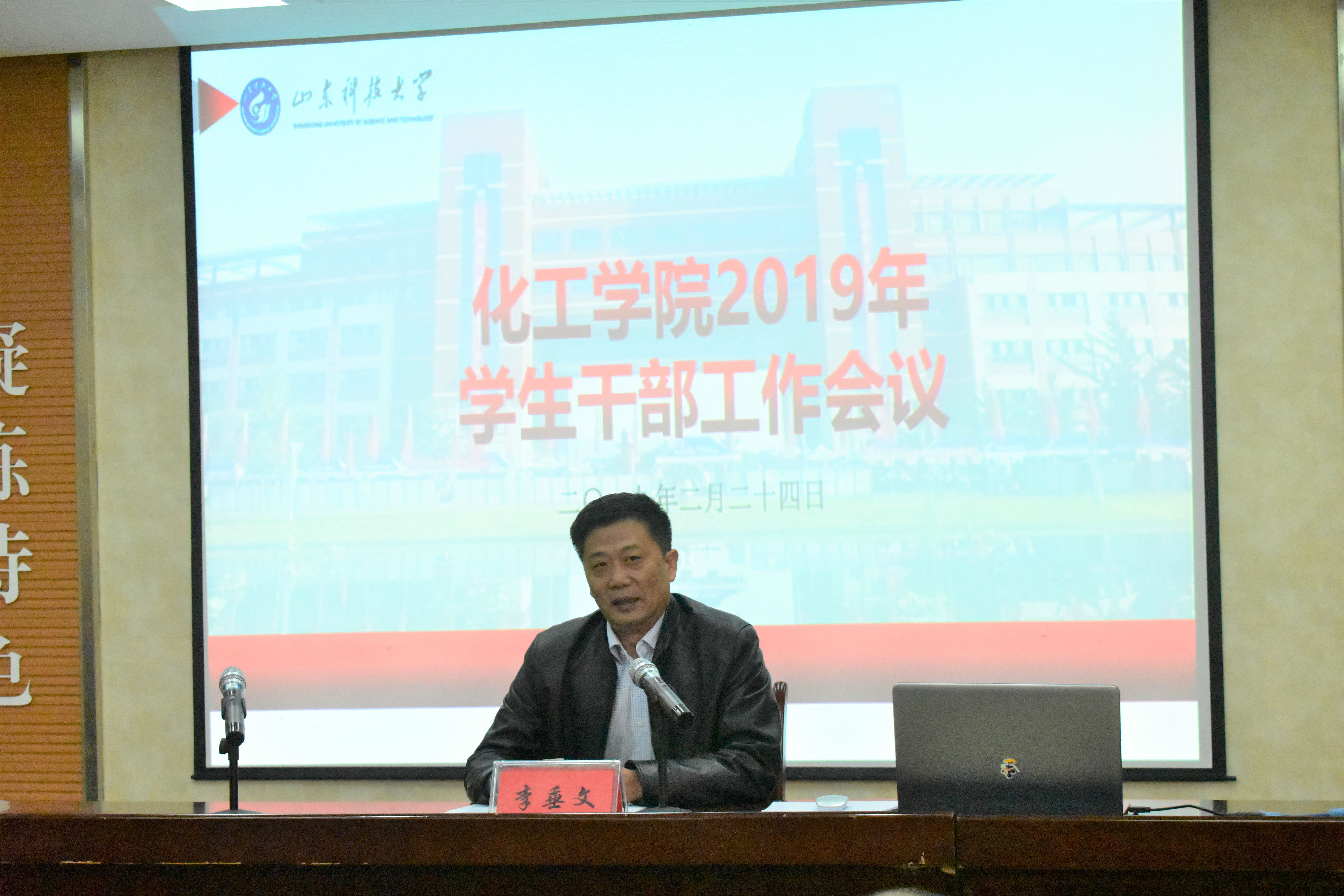 2月24日,澳门十大信誉好的网站在J2-104报告厅召开新学期全院学生干部大会。学院党委书记李垂文、院长吕宪俊出席会议。全体专兼职辅导员、各学生组织、各班级主要学生干部、全体学生党员参加了会议。学院团委书记范俊峰主持会议。