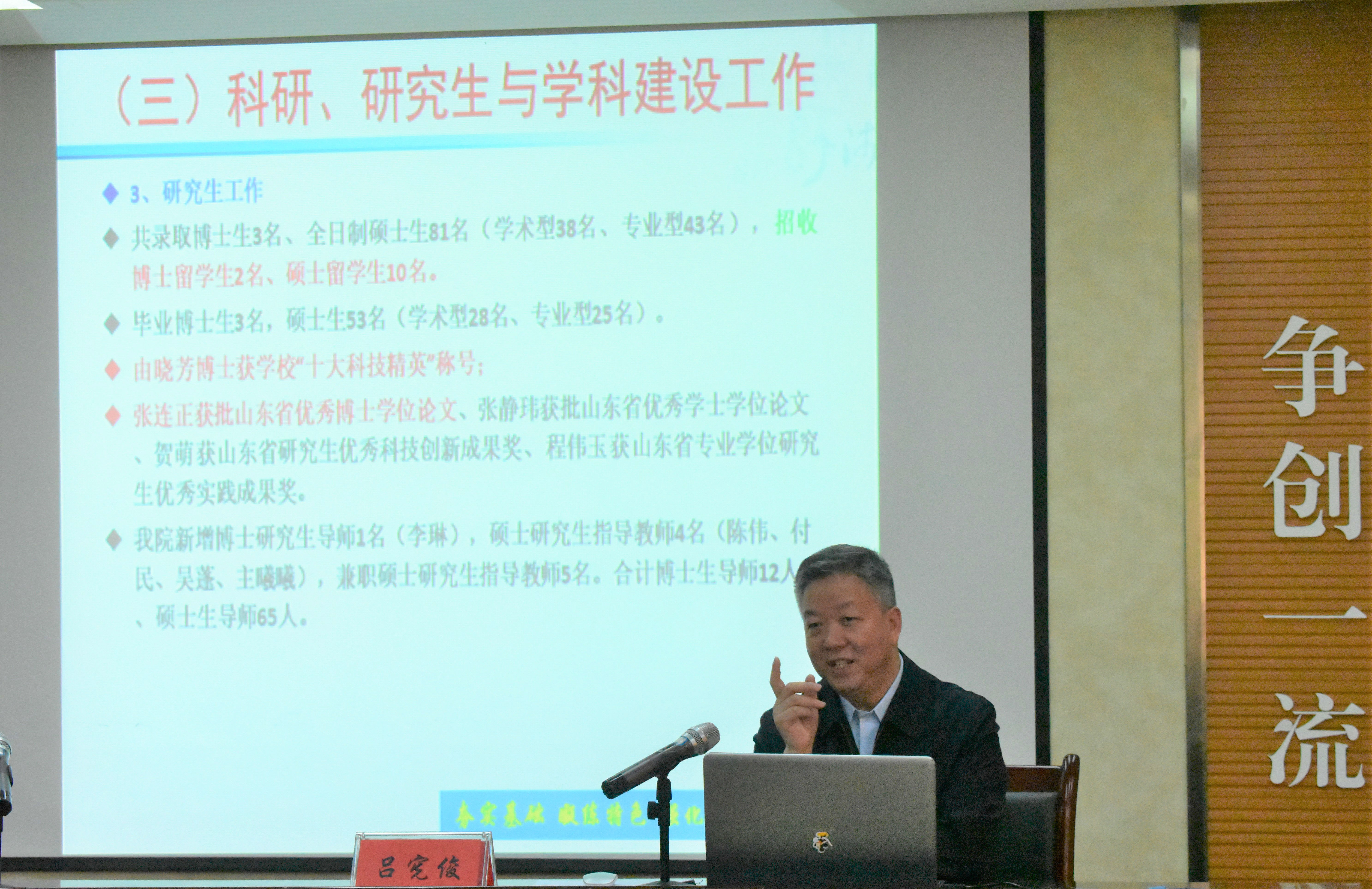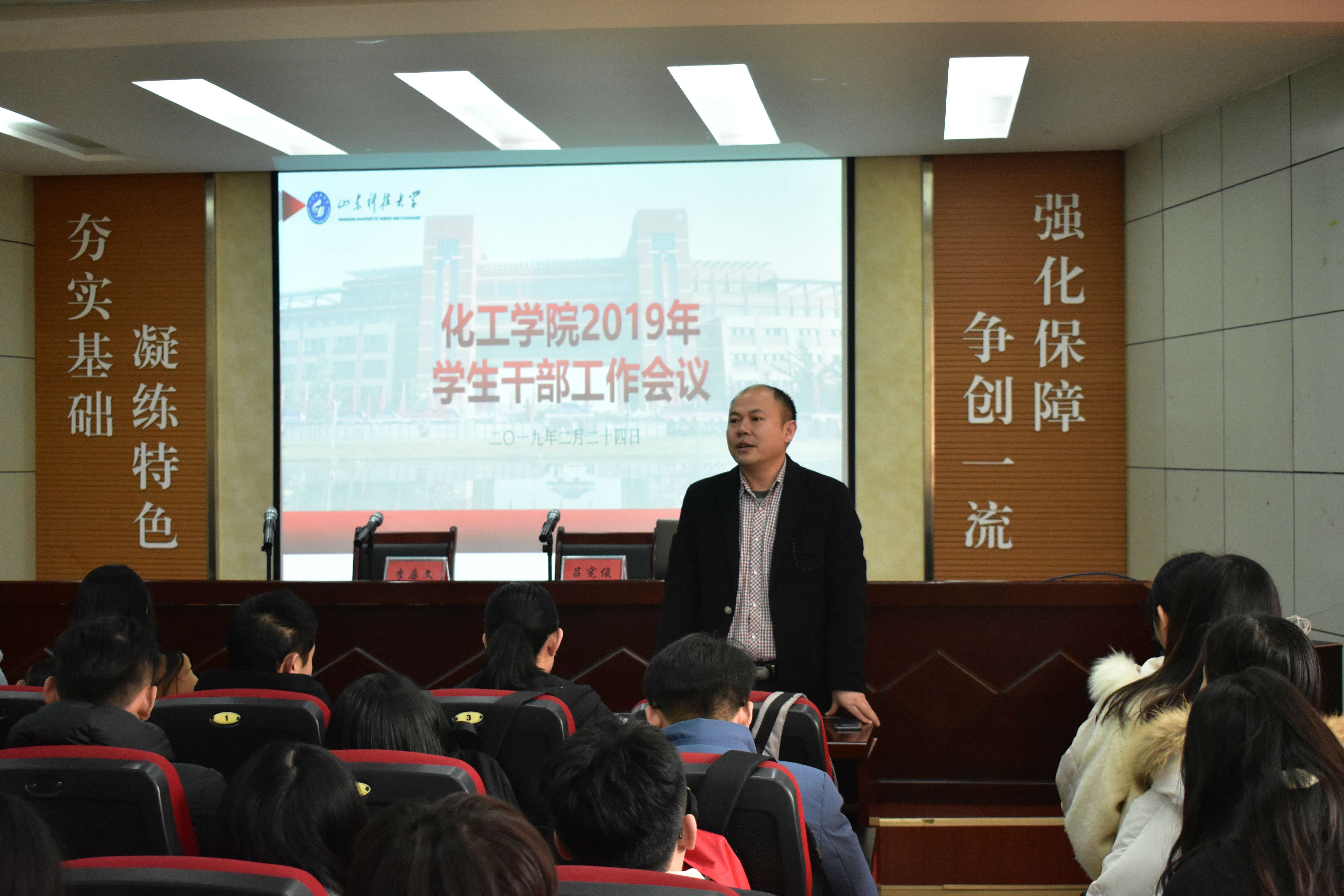 院长吕宪俊向全体学生干部通报了学院目前发展情况,他从科学研究、学科建设、教育教学、人才引进、人才培养、学团工作等方面总结了学院2018年度的工作,向全院学生干部传达了2019年学院工作要点和工作目标。他勉励学生干部传承好学院文化传统,发扬集体主义、艰苦奋斗精神,珍惜时光、刻苦学习、奋发成才。