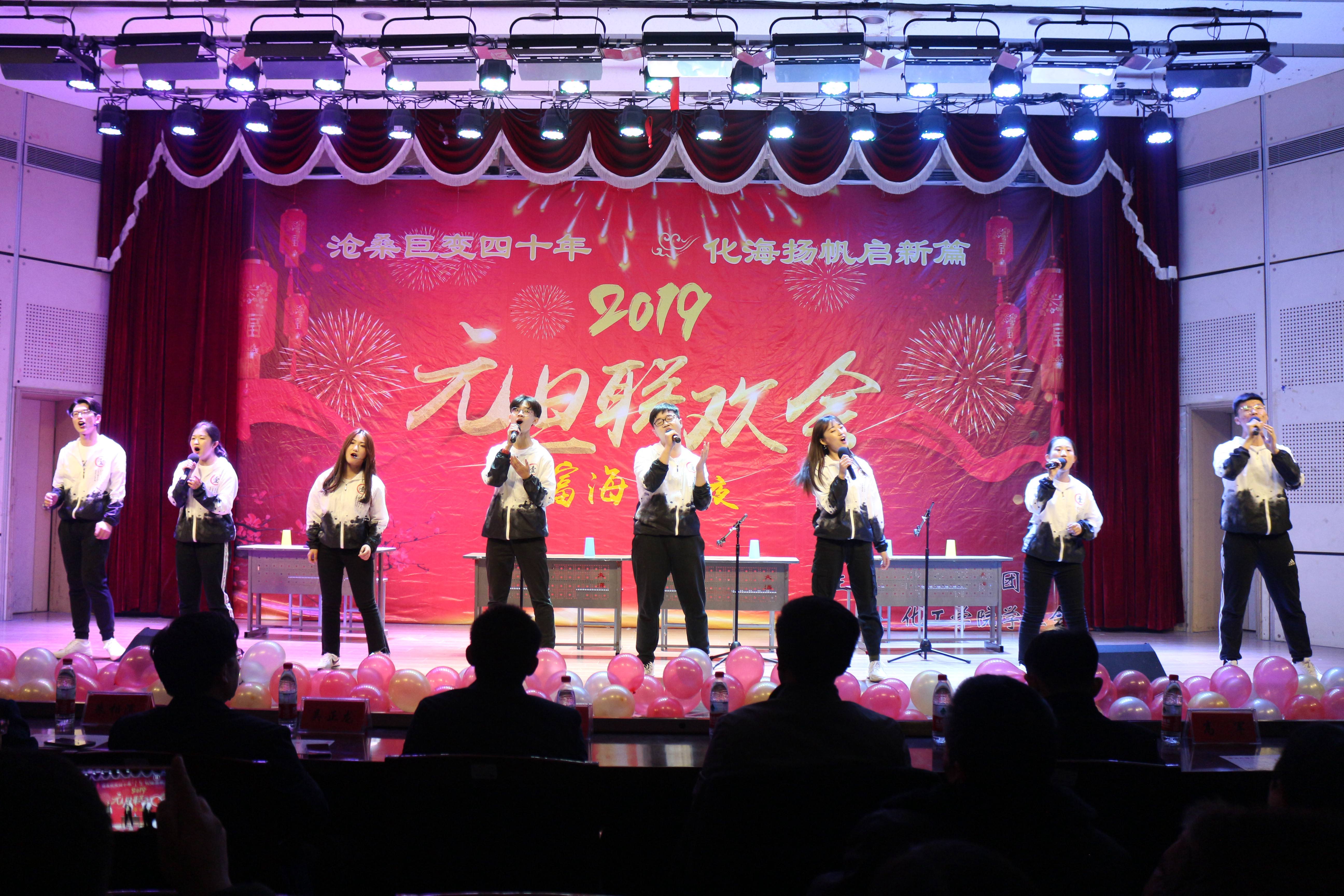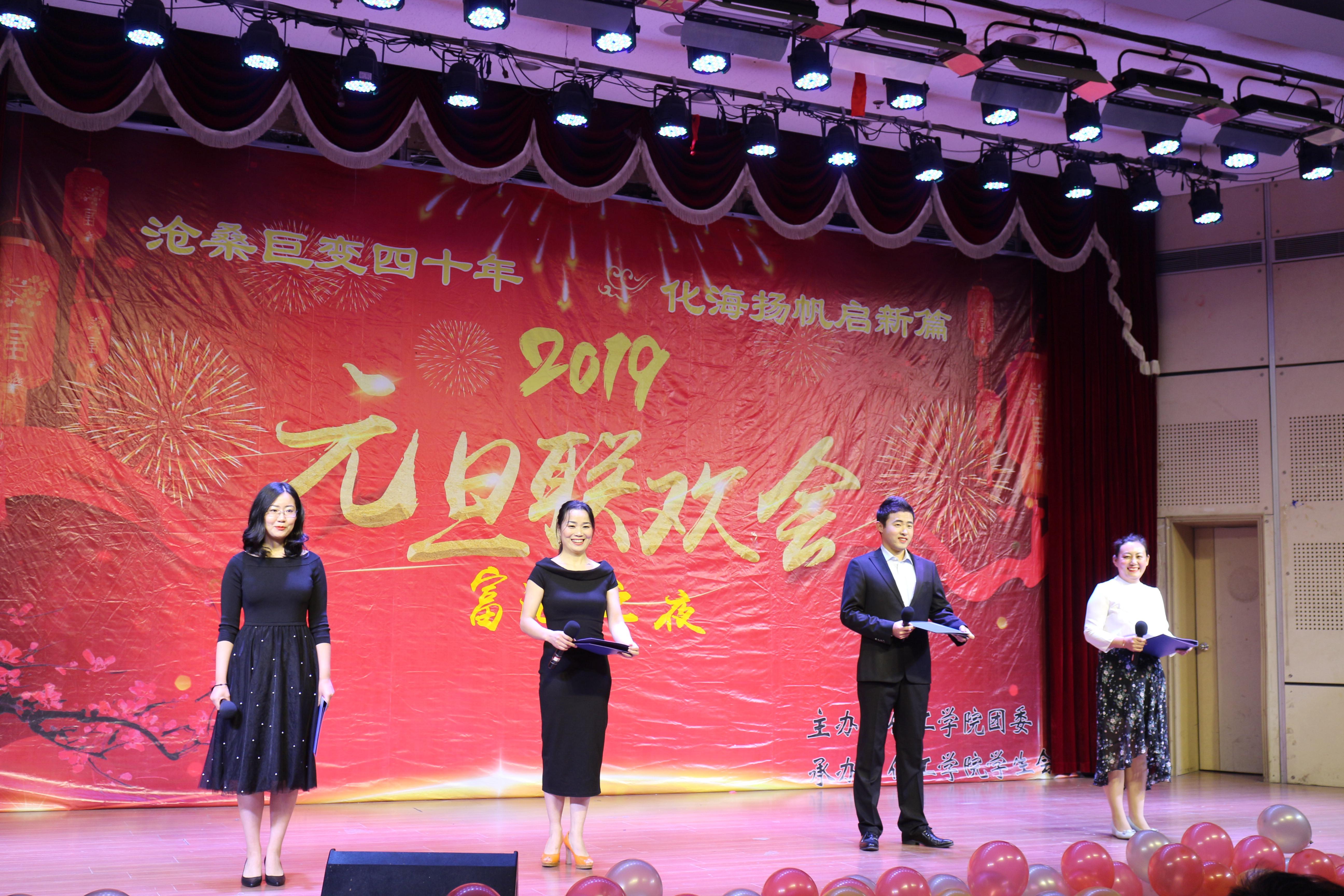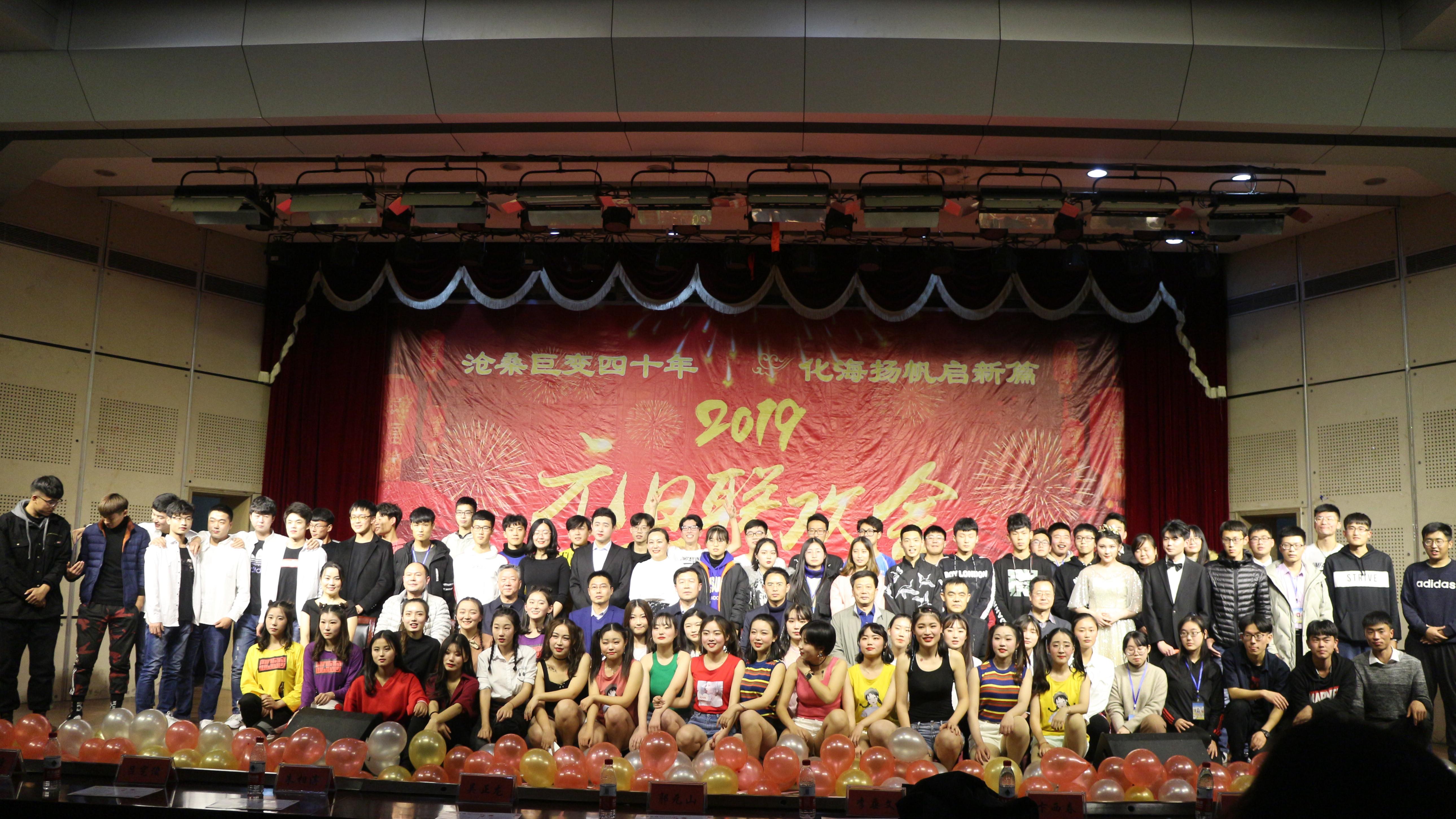 12月25日,澳门十大信誉好的网站举办“沧海巨变四十年、化海扬帆启新篇”“富海之夜”2019年元旦联欢会。富海集团人力资源中心总经理郭元山、人事共享中心主任朱相滨、合作发展处处长吴正龙、学生工作处副处长卞西春、澳门十大信誉好的网站党委书记李垂文、院长吕宪俊、副院长高军、团委书记范俊峰等领导和嘉宾到场与澳门十大信誉好的网站师生一起共庆元旦佳节。