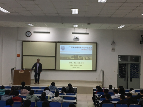 为培养矿物加工工程专业学生的国际化视野,帮助矿物加工专业新生尽快了解和认识专业,矿物加工工程系于11月5号邀请中国矿业大学俞和胜教授为矿物加工工程2018级学生在J1-228进行新生研讨课的授课。俞和胜教授博士毕业于加拿大滑铁卢大学,并在加拿大阿尔伯塔大学从事博士后研究工作,回国后入职中国矿业大学,具有丰富的海外求学、研究及生活背景。