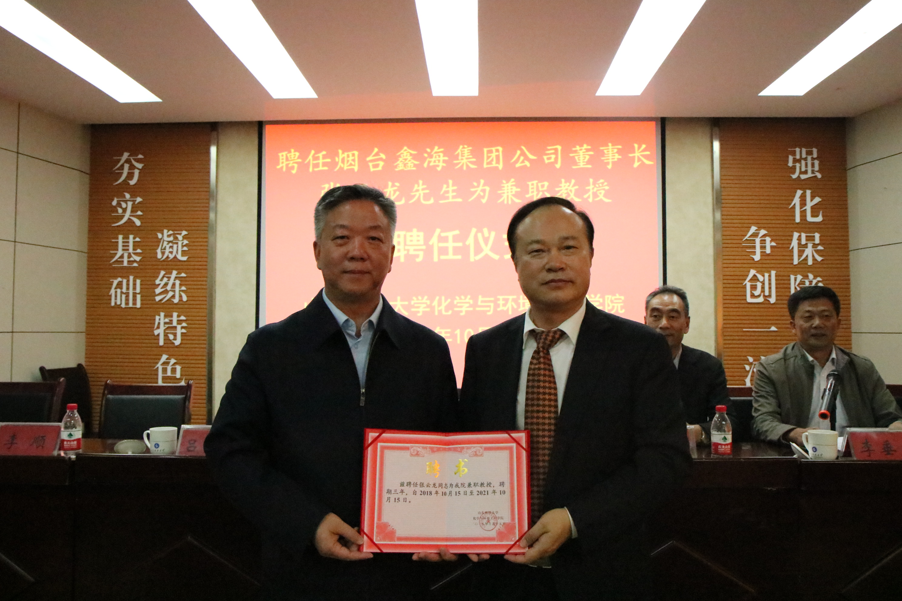 10月15日,澳门十大信誉好的网站举行兼职教授聘任仪式,烟台鑫海集团公司董事长张云龙受聘为学院兼职教授。烟台鑫海矿业集团公司董事长张云龙、行政总监韩卿旺一行五人受邀出席聘任仪式。澳门十大信誉好的网站党委书记李垂文,学院院长吕宪俊出席聘任仪式,学院部分师生参加了上述活动。