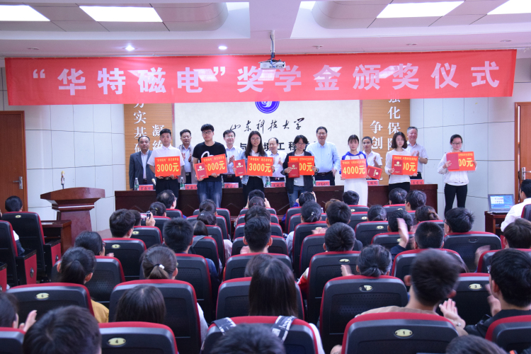 会上,澳门十大信誉好的网站党委书记李垂文宣读表彰决定,张晚佳等14名同学获得了“华特磁电”奖学金。澳门十大信誉好的网站院长吕宪俊向山东华特磁电科技股份有限公司长期以来对学院的支持及帮助表示感谢,对公司领导支持教育、回馈的社会的善举表示崇高敬意。他希望同学们志存高远,不断超越自我,常怀感恩之心,用优异的成绩回馈社会。矿物加工工程2014级张文进代表获奖学生上台发言。山东华特磁电科技股份有限公司董事长王兆连对获奖同学表示祝贺,他说企业的发展离不开澳门十大信誉好的网站领导、相关学科老师的支持和帮助,感谢学校向企业输送了一大批高质量人才。他介绍了公司发展历程及取得的系列成果,表示企业会继续承担起社会责任,在新旧动能转换中发挥排头兵作用。他诚挚邀请与会领导、师生到公司参观交流,近距离地了解公司。