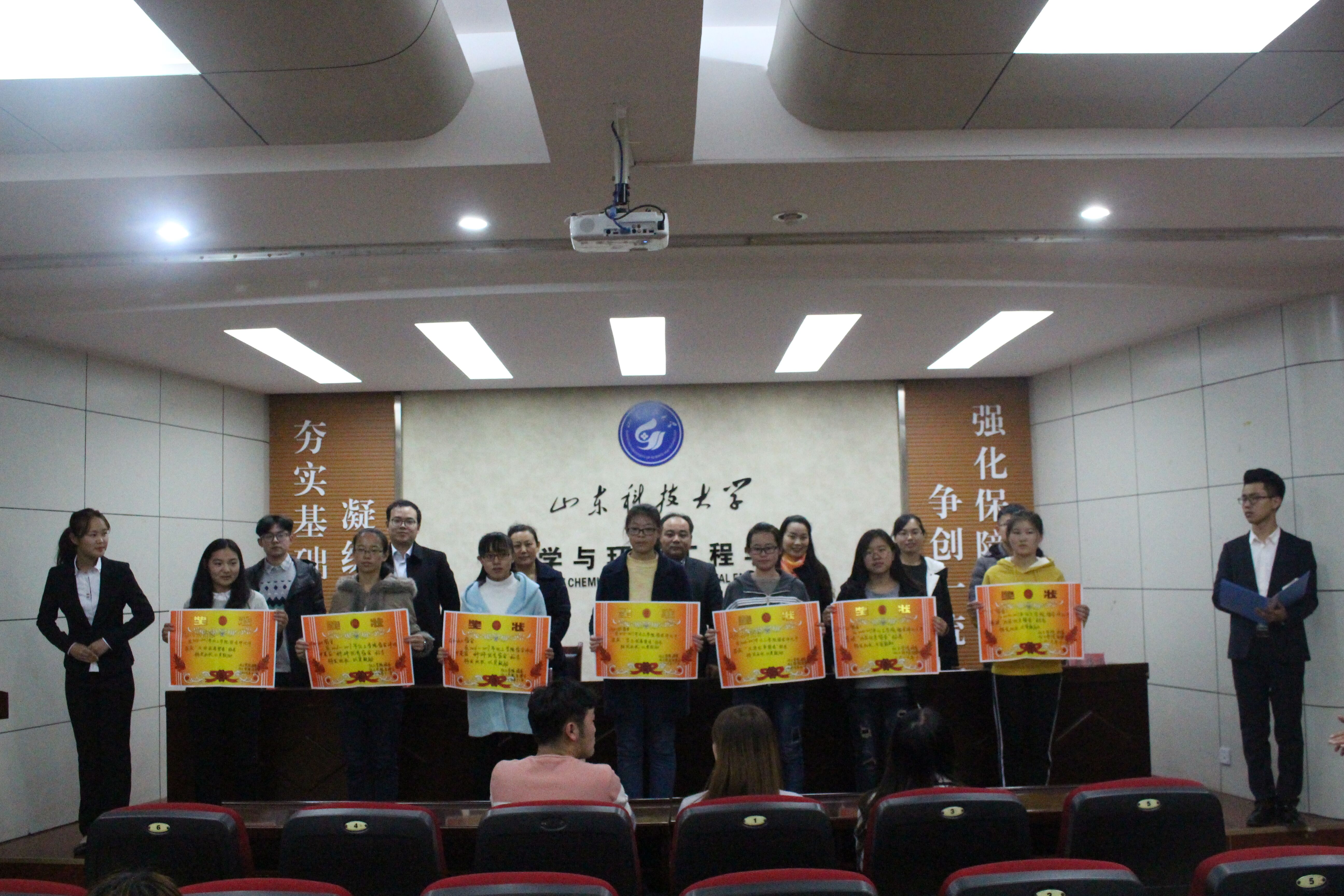 会上,易凡老师宣读了学生组织优秀个人获奖名单。李玲玲老师宣读优秀宿舍、宿舍管理优秀班级获奖名单。获得奖项的优秀宿舍代表、宿舍管理优秀班级代表、优秀学生组织干部、优秀学生组织干事上台领奖。获奖宿舍代表化学工程与工艺2016级1班李鸿森同学上台发言,他向大家介绍了为建设文明宿舍所做出的努力,强调了建设文明宿舍的重要性,并表示今后还会一如既往地响应号召,争做文明和谐宿舍的建设者。