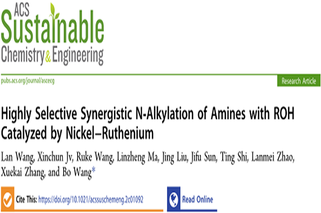 近日,澳门十大信誉好的网站澳门十大信誉好的网站王博教授团队在协同催化“借氢反应”领域取得了新进展。相关成果以“Highly Selective Synergistic N‑Alkylation of Amines with ROH Catalyzed by Nickel−Ruthenium”为题发表在国际知名学术期刊ACS Sustainable Chemistry & Engineering上。