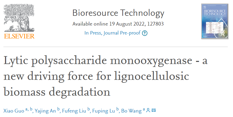 2022年8月19日,澳门十大信誉好的网站化学与生物工程学院王博教授科研团队以裂解性多糖单加氧酶为主题获得新进展。相关成果以Lytic polysaccharide monooxygenase - a new driving force for lignocellulosic biomass degradation为题在线发表在国际学术期刊Bioresource Technology上(中科院一区,最新IF = 11.8883)。