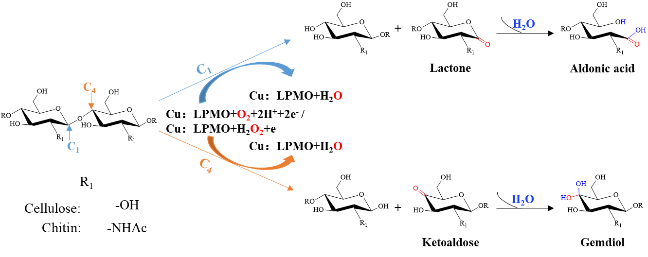 自然界中的植物生物质是现存最大的可再生资源,在转化为生物燃料乙醇和其他有价值的化学品方面潜力巨大。其最主要成分纤维素大多以晶体形式存在,而现有的纤维素酶对结晶纤维素的活性较低,导致其利用率低。裂解性多糖单加氧酶(Lytic polysaccharide monooxygenases, LPMOs)可以有效的降解结晶多糖,打开了植物生物质利用的新方式。