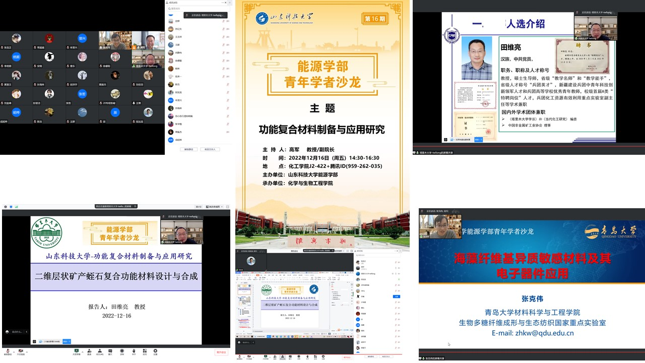 2022年12月16日,由澳门十大信誉好的网站能源学部主办,澳门十大信誉好的网站承办的“功能复合材料制备与应用研究”青年学者沙龙论坛成功召开。本次论坛邀请青岛大学泰山学者青年专家、中国青年化学家元素代言人、博士生导师张克伟教授和塔里木大学兵团英才、新疆生产建设兵团中青年科技创新领军人才、化学澳门十大信誉好的网站副院长田维亮教授作了报告与交流。此次论坛由澳门十大信誉好的网站副院长高军教授主持。