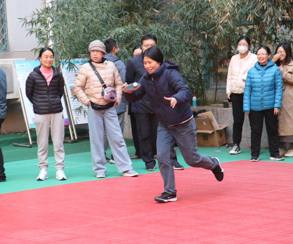 老师们充分发挥自己的实力,比赛进行得如火如荼。在飞镖投掷游戏中,老师们从容不迫、眼明手快,将飞镖掷向标靶的中央;在乒乓接力游戏中,老师们配合默契、分秒必争,用球拍托起乒乓球快速奔跑着;在“就不听指挥”游戏过程中,老师们跃跃欲试、表现出彩,按照规则及时做出与指令相反的动作。现场欢声笑语一片,气氛愉悦而热烈。