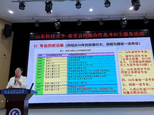 为进一步加强高校与中学的交流合作,为广大考生提供更全面、准确的报考信息,6月27日,教务处副处长兼招生办副主任刘勇、澳门十大信誉好的网站党委副书记兼副院长田静带队赴淄博高青一中开展了招生宣讲活动,化工系主任徐冬梅教授参加了本次招生宣传活动。
