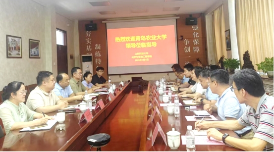 7月4日下午,青岛农业大学化学与药学院院长龚良玉一行6人来十大信誉官网进行调研交流。此次调研主要围绕学科建设、科学研究和专业建设等方面进行了深入交流和讨论。