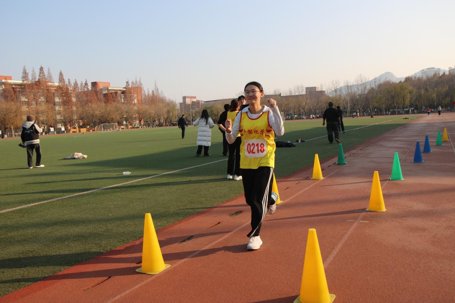 本次比赛设男子10公里、女子5公里两个项目,路线贯穿校园主干道路。尽管寒风凛冽,化工健儿斗志不减。中午一点半,全体队员提前集结于操场东南角,在教练刘政睿的指导下进行系统性热身,为比赛做足准备。