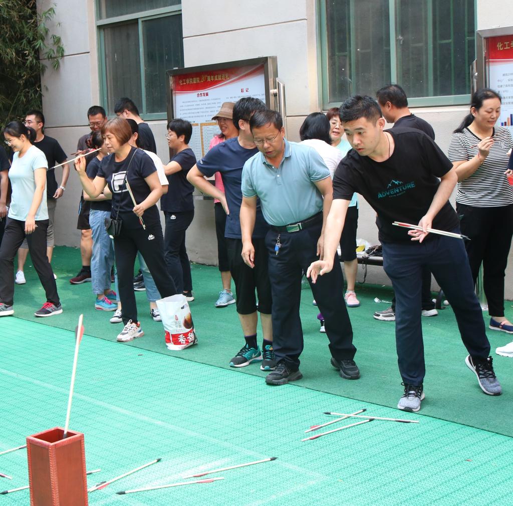 本次趣味运动会共设置投壶、运输小队、运输大队、跳绳4个项目,学院教工根据所在部门、系(中心)分为6支队伍,以集体形式进行比拼。投壶现场,一支支道具箭从手中抛出,每个人都期待着箭入方壶;运输小队项目是用箭夹乒乓球接力,运输大队项目是两人夹气球接力,考验的是平衡能力和团队合作。跳绳作为喜闻乐见的运动项目,老师们积极踊跃参与,一展身手。运动会不但是智慧和体力的角逐,更是团结和协作的比拼。现场参赛教职工兴致盎然、斗志昂扬,现场气氛热烈,掌声笑声不断,大家其乐融融。