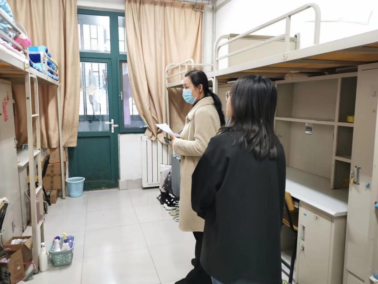 学院领导对卫生清理情况进行全面检查。院党委书记窦存增、院长吕宪俊查看了学院相关区域、场所的环境卫生、安全情况,指出不足,督促整改,营造健康舒适、温馨和谐的学习生活环境。学院党委副书记兼副院长田静带领全体辅导员,多次深入学生宿舍进行检查,督促整改,要求做到宿舍物品摆放整齐、无卫生死角、无垃圾杂物、电灯吊扇无积尘、无床帘悬挂、窗明几净等。对于检查中发现的问题,向所在班级、宿舍提出整改意见和目标,限期整改,实现全员达标。