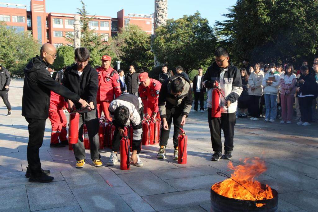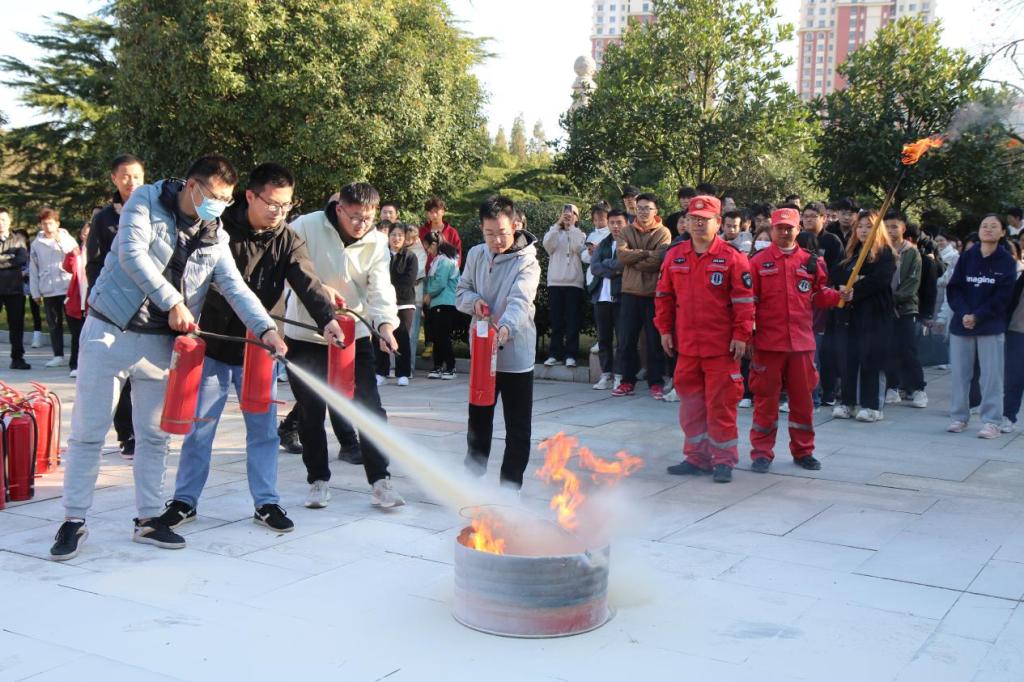 陈科长首先强调了消防安全的重要性,他提到化工学子经常在实验室使用明火以及部分高温设备,掌握消防安全知识格外重要。学习消防安全知识能够帮助师生及时发现并消除火灾隐患,同时可以提高突发情况应对能力。随后,陈科长讲解了干粉灭火器等消防器材的正确使用方法和细节动作要领。同学们在陈科长和几位安全员的指导下,操作使用消防器材,边学边练,通过亲身体验灭火过程来掌握使用灭火器的要领。