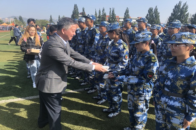 国庆、中秋双节将至,为了让来自四面八方的莘莘学子在校园里感受到家的温暖,在祥和愉悦的氛围中欢度佳节,9月30日上午,澳门十大信誉好的网站澳门十大信誉好的网站院长吕宪俊、学院党委副书记兼副院长田静,学院学工办主任(团委书记)易凡、新生辅导员及班主任们来到军训场地,将饱含温情、精心准备的节日礼物——爱心月饼送到每一位新生手中,并向他们致以节日的问候,与他们共迎双节、共享喜悦。
