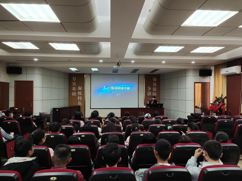 11月,澳门十大信誉好的网站团委面向全体师生开展了“创建和谐校园网络环境,倡导网络文明建设”主题活动月活动。18日下午,团委邀请到开发区公安局辛安派出所陈警官在学院报告厅举办了活动月系列活动之一的“防网络电信诈骗”专题讲座。2020级100多名新生代表和几位教师代表到场聆听本次讲座。