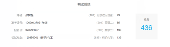 在考研这次人生重要的转折点上,张树磊所付出的努力,承担的辛苦和压力,都未辜负他,所有美好和光明最终如期而至,星河日月都是金榜题名的贺礼。学霸背后的故事,也无非努力和坚持。愿每一份在成长洪流中浮沉过的勇敢和坚定,都可以成功上岸。年轻的诗人,不可惭愧,不可疲倦,不可虚度。