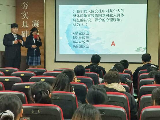 本次竞赛活动包括四种题型,分别是必答题、合作题、限时题和风险题。取得最高分数的代表队获得胜利。比赛过程中,虽题目类型各异,但选手们从容不迫地应答,幽默风趣地描述和默契相当地配合,都赢得了场下阵阵掌声。观众们也积极上台参与本次活动,并获得了奖品。此次活动的举办不仅让同学们了解到了许多有趣的心理知识,还收获了快乐与友谊。