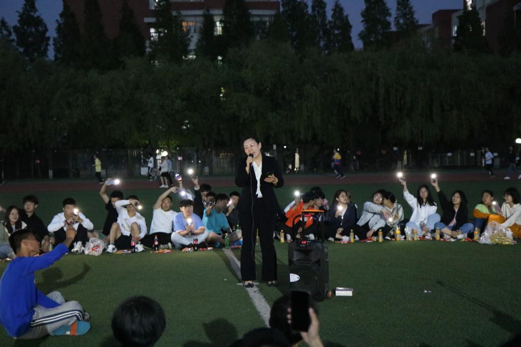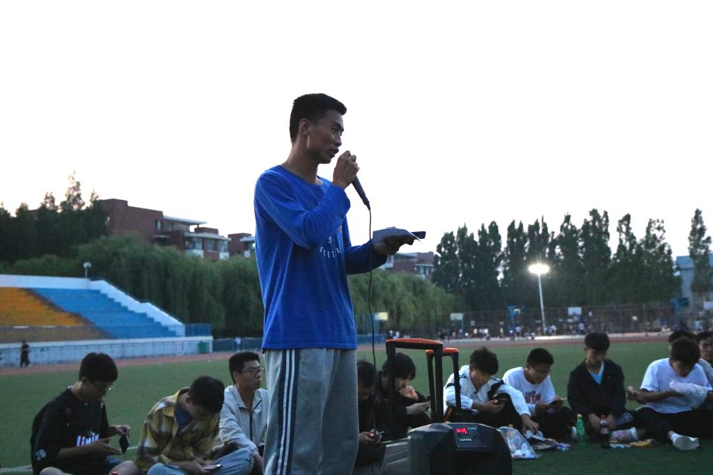 在之后的表演环节中,到场的老师给大家带来了重重惊喜:2020级辅导员满灏老师献唱《没有共产党就没有新中国》和《奔跑》,伴随着同学们的自发合唱和热烈掌声,让同学们不由得惊呼“今天看到了不一样的满老师,但都是一样的贴心满满”;2019级辅导员李玲玲老师为大家带来《打靶归来》和《最浪漫的事》,第一首的激昂动听歌声让同学们想起了战士打靶的场景,第二首更是唱出了全体辅导员的心声:“我能想到最浪漫的事,就是和你们一起慢慢变老……”;随后,易凡老师一首气势磅礴的《精忠报国》,让在场同学禁不住回想起近代百年的中国史,跟着她一起唱出了青年学生精忠报国的热情,并一起喊出了“化工化工谁与争锋”的运动会口号,掀起一个小高潮;最后,2018级辅导员徐华坤老师演唱《踏山河》,全体同学倾情跟唱并打开手机手电筒左右摇摆------一百多部手机的熠熠光芒与天上的闪烁星光遥相呼应,歌声、星光和掌声不仅让到场师生倍觉幸福美好,而且惊艳了风雨操场的所有行人。一位来自塔吉克斯坦的大二留学生被歌声感动驻足不愿离去,主动提出为大家唱首歌,主持人以中国人特有的热情友善把他请到圈中,他满含柔情地为大家演唱了一首英语歌曲《PERFECT》,给这场红歌会带来了异国情调和别样惊喜。