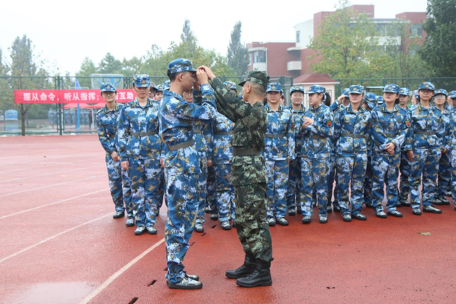 9月6日上午8时,澳门十大信誉好的网站2021级新生军训开训典礼在风雨操场拉开帷幕。化工学子着迷彩军装,整装列队,以饱满的精神面貌迎接大学军训的第一天。