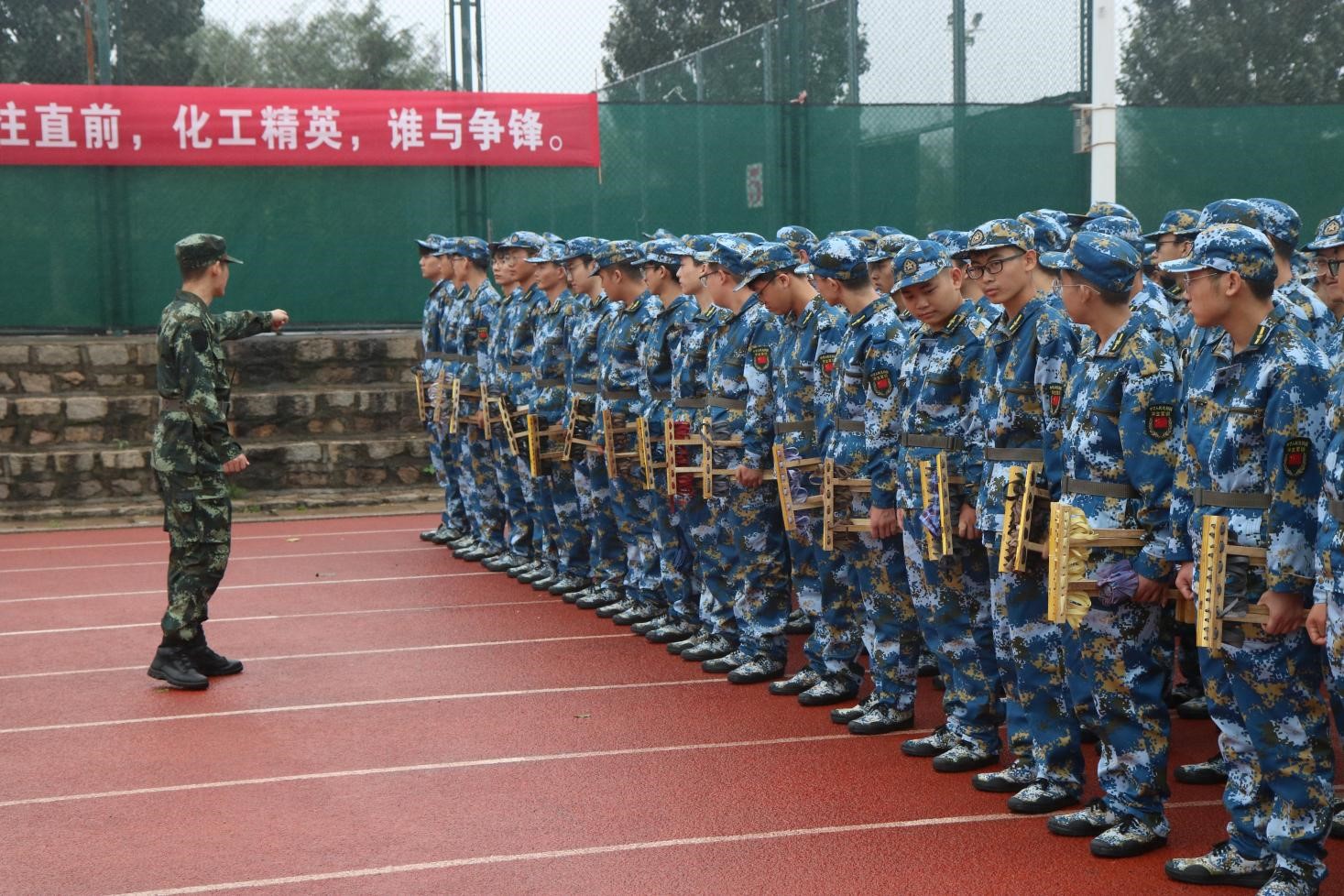 9月的骄阳之下,化工学子来到军训场地,从站军姿到整理军装,教官们严格要求、手把手教学,学员们英姿勃发。军训是同学们进入大学的第一堂课,是体育课也是军事课、思政课,更是一堂真正的国防教育课,是展示青春风采的大舞台,也是培养爱国主义精神的大课堂。