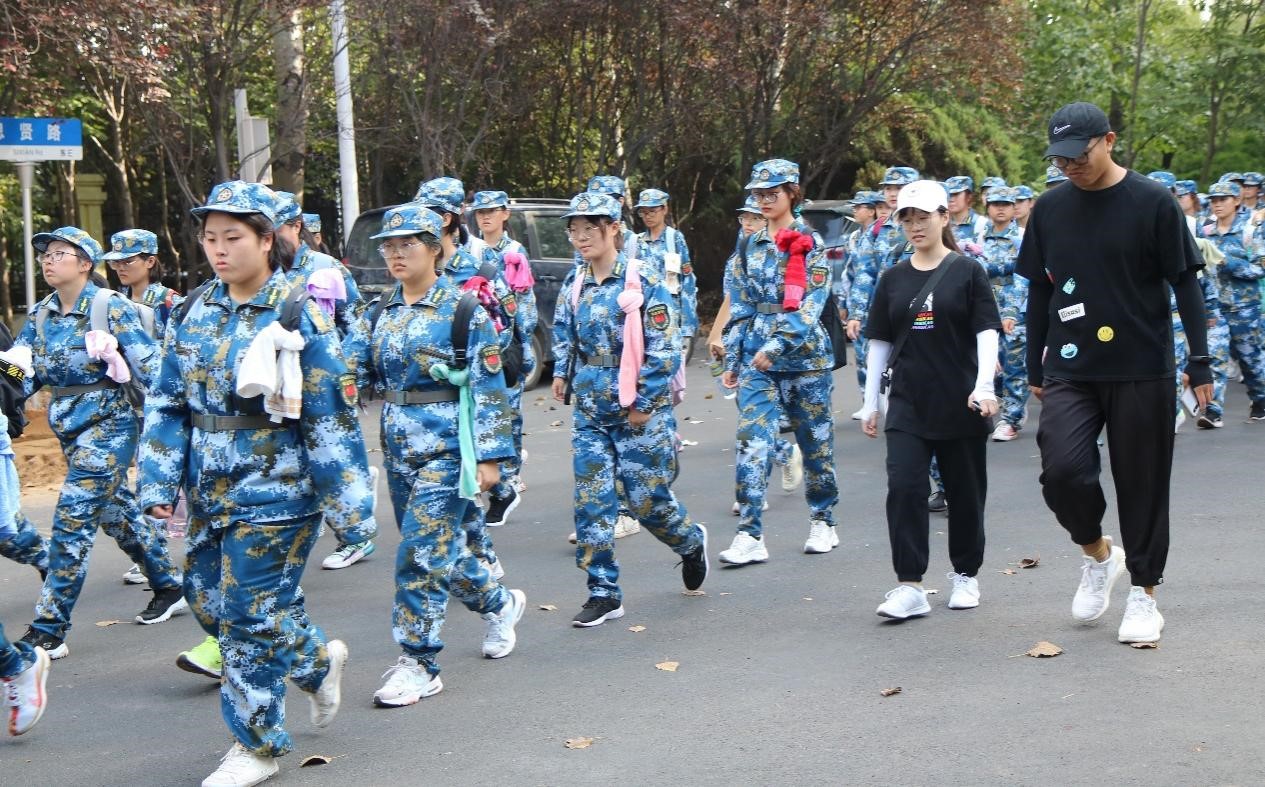 9月13日清晨,澳门十大信誉好的网站2021级大一新生在军训教官的带领下开展军训行军拉练,学院党委副书记兼副院长田静、新生辅导员易凡、王大鹏、李淑全程陪同。