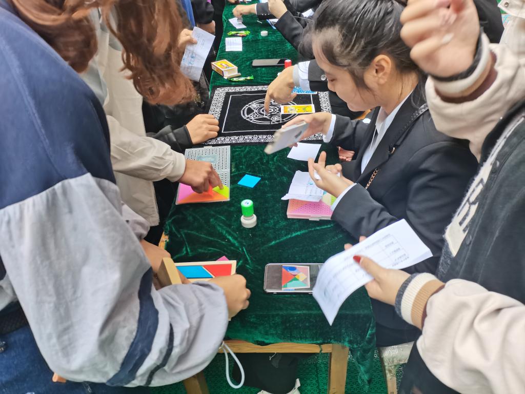 活动包含娱乐测评和心理学游戏。娱乐测评采用问答形式,由工作人员进行解析,帮助被测者缓解压力、解决问题,发现并认清真实的自我,心理学游戏则测出同学们的芊芊心结。此外,还有别有乐趣的七巧板游戏,拼接出同学们心中的奇思妙想;你来比划我来猜和小球回家,让同学们收获了动手合作的快乐;更有“想对你说”,道出了同学们心中的千言万语。抽奖环节最是激动人心,抽到心仪奖品的同学们,脸上充盈着满足的笑意。