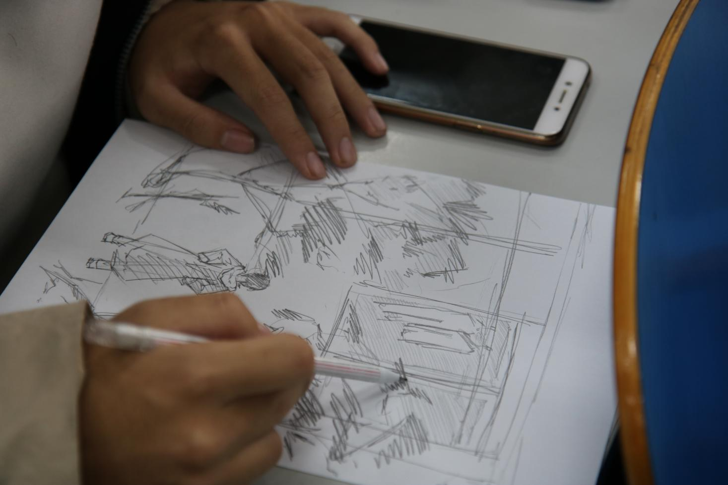 一张画纸,一支画笔,简单的工具为学生们带来的是不同以往的思考和感受。通过“雨中人”主题绘画,帮助毕业生缓解考研和就业的压力,通过“房树人”主题绘画,了解新生的心理健康状况和适应程度。