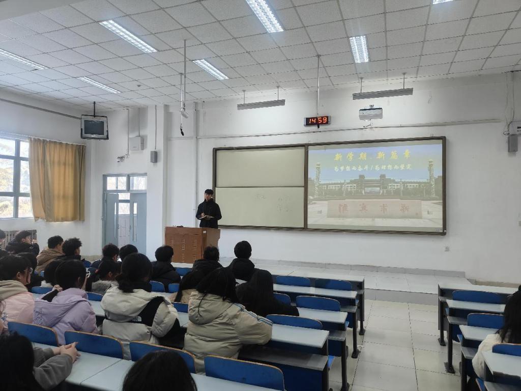 班会上,辅导员向同学们致以新年的问候,希望同学们尽快调整自身状态,全身心地投入到学习生活中,不懈拼搏,奋勇争先。随后,辅导员传达了学校开学前后各项工作要求,并开展了一系列教育宣讲。开展理想信念教育,带领学生认真学习党的二十大精神,引导学生坚定理想信念,树立崇高理想。开展安全教育,共同观看安全警示片,引导学生重视校园安全,提高防范电信网络诈骗意识与能力,克服松懈麻痹思想,增强安全意识。开展生命健康教育,普及心理健康知识,引导学生注重心理健康,强化防疫意识与自我防护能力。开展学涯规划教育,号召学生认真思考自己的兴趣、能力和目标,制定出适合自己的学业规划。