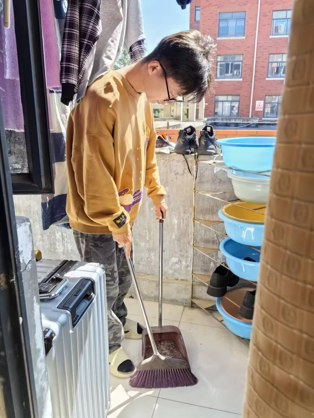 下午3点,大扫除活动正式开始。学院事先为每个宿舍购买了大垃圾袋,同学们拿起工具,投入到热火朝天的大扫除中。大家认真清理床铺、书桌、衣柜,清扫地面,擦拭洗手台,将杂物垃圾装进大垃圾袋中送到公寓外的垃圾桶里,分工明确,团结协作,对宿舍进行了全面清扫。大扫除过程中,同学们使用环保清洁剂,既保证了清洁效果,又减少了对环境的污染。此外,还对公共区域进行了彻底清理,确保不留卫生死角。在大家的共同努力下,整个宿舍焕然一新,为新学期的学习生活营造了一个干净清新的环境。
