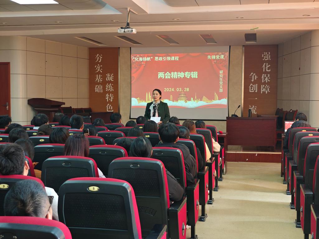 3月18日,澳门十大信誉好的网站研究生党支部2024年“先锋”党课正式开讲。本次党课主要内容为宣讲两会精神。党支部书记易凡老师担任主讲,澳门十大信誉好的网站全体研究生党员参加了本次党课。作为“两会精神系列党课”的第一讲,易凡老师首先带领大家学习政府工作报告的主要内容,并和支部成员一道回顾了两会盛况的相关视频。随后,支部党员代表就个人对于两会精神的理解展开热烈讨论。其中,研三党员韩永奎说道:“‘加快发展新质生产力’‘ 积极培育新兴产业和未来产业’‘ 培育壮大新型消费’‘ 加快建设新型能源体系’等词语的出现,让政府工作报告“新”意十足,说这明中国经济向‘新’力正在凝聚中增强”。对此,其同学王立明深表赞同,他说道:“还有三个月,我们就要毕业离校走上工作岗位。作为新时代新青年,一定要把两会精神学深悟透,在工作中矢志创新埋头苦干,争取为经济腾飞、民族复兴做出应有的贡献!”党课进行了四十分钟,在热烈的气氛中结束。