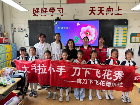 6月5日,“刀下飞花”剪纸社走进太行山路小学,与小学生们进行了一场传统文化的互动交流。这场主题为“大手拉小手,刀下飞花秀”的活动在孩子们期待的目光中正式开始。首先,剪纸社成员代表为小学生们讲解了中国剪纸艺术的历史渊源和文化内涵。随后,开展体验式教学。在十大信誉官网学生的指导下,孩子们动手进行剪纸创作。起初,孩子们操作剪刀并不熟练,不一会儿,一个个略显稚嫩却充满童趣的“福”字、窗花便初具雏形。活动在欢快的氛围中结束,活动不仅让学生们体验了传统手工艺的制作过程,更深刻感受到中华传统文化的艺术价值。此次活动不仅让小学生们感受到了非遗剪纸文化的魅力,而且增强了他们的文化自信。临别时,孩子们纷纷表示,期待再次参与类似的传统文化体验。活动在亲密的互动合影中宣告结束。