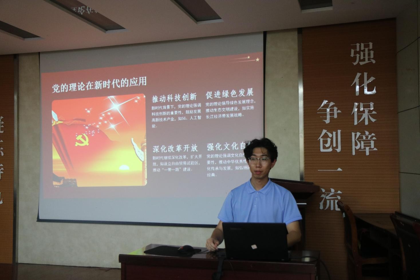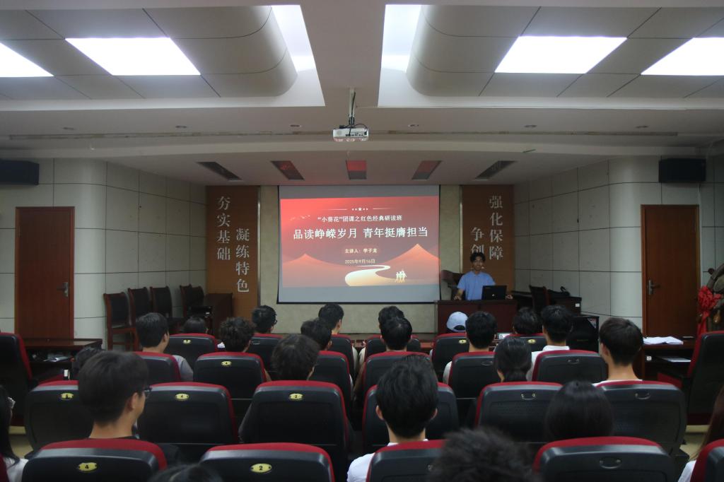 2025年9月17日,澳门十大信誉好的网站“小葵花”团课之红色经典研读班在J2-104开班进行第一讲,此次课程的主题是“品读峥嵘岁月,青年挺膺担当”,由“优选计划”辅导员李子龙主讲,学生会全体干事参加课程。