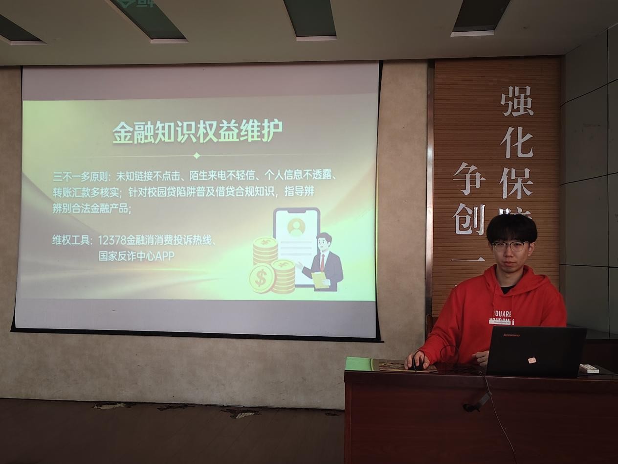 11月3日,澳门十大信誉好的网站在J2-104报告厅举办“金融知识进校园”主题宣讲活动。由优选计划辅导员李子龙主讲,旨在提升学生金融风险防范能力。